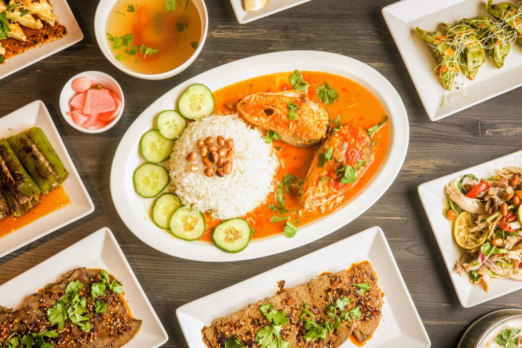 Met garnalen, rijstnoedels en licht pittige zeevruchtenbouillon.
